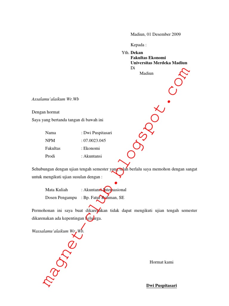 Doc Yogyakarta 11 Oktober 2013 Hal Surat Permohonan Izin Ujian Susulan Lampiran 1 Satu Berkas Randi Saka Academia Edu